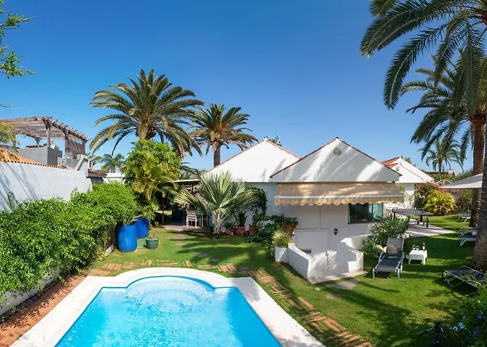 La Villa Calypso - Vivienda Vacacional Con Piscina Privada Maspalomas dysponuje tarasem z widokiem na basen, 32 min jazdy od lotniska Gran Canaria.
